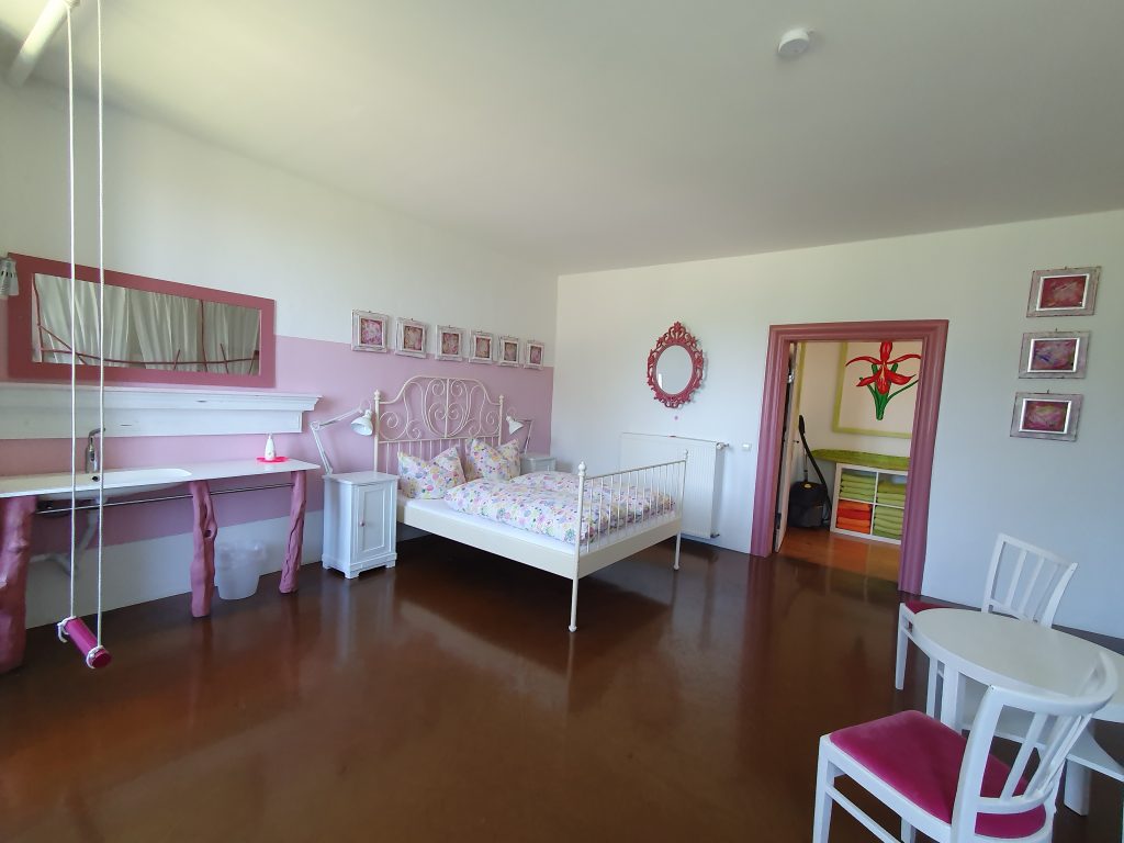 Kreativ, inspirierend und flexibel. Doppelbett und Klappsofa machen es zu einem Raum fรผr Ideen, Entspannung und kleine Trรคume.